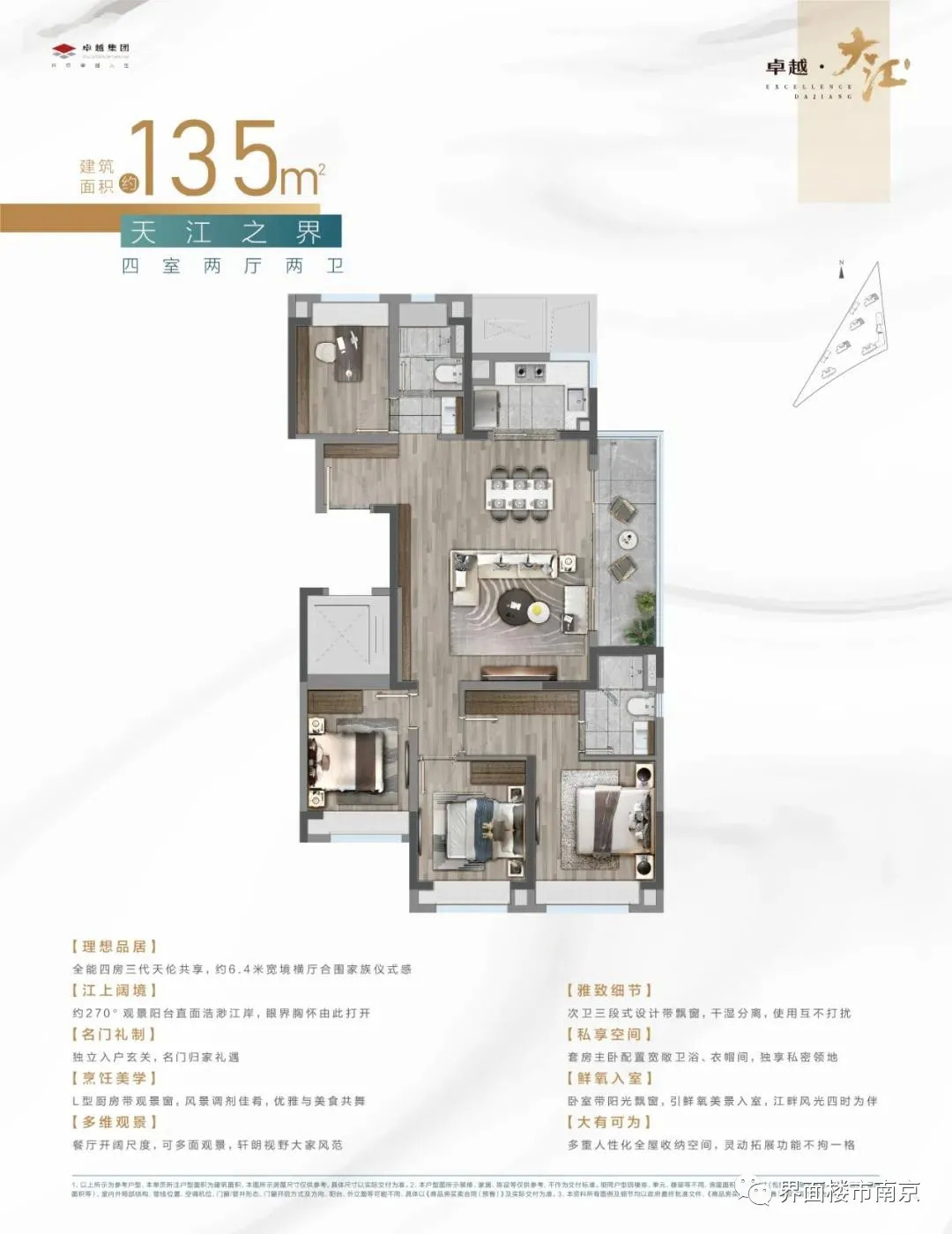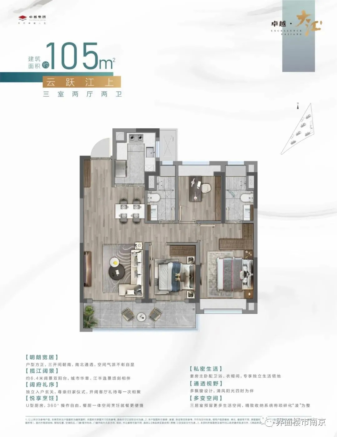 11月30日,卓越大江首开,推出3、5号楼销许,共计264套房源,户型建筑面积105、135㎡,销许均价3.11-3.6万元/㎡,首付最低8成,验资260万,精装交付。全部售罄。