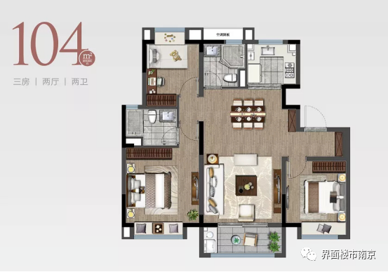建筑面积约105㎡ 三室两厅两卫