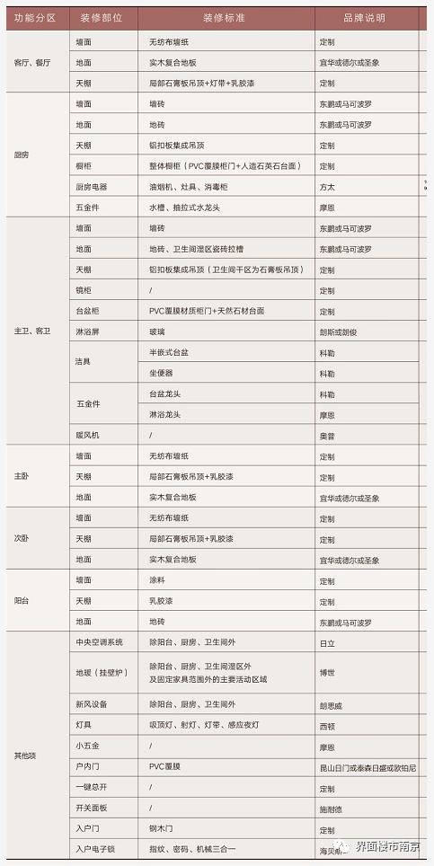 在精装修标准上,中央空调、地暖、新风系统三大件齐全,在装修品牌上,高仪、杜拉维特、西门子、摩恩、科勒、方太、日立等一线品牌云集。