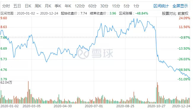 5.7亿存货消失之余,广州浪奇的贸易黑洞进一步扩大至8亿,今年三季度亏损额更是高达11.7亿。今年以来,广州浪奇股价涨跌幅为-52.08%,截至12月24日,广州浪奇报收3.43元/股,市值21.52亿。