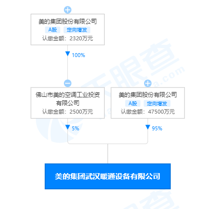据天眼查APP显示,近日,美的集团武汉暖通设备有限公司成立。该公司注册资本5亿人民币,法定代表人为殷必彤,注册地址位于武汉经济技术开发区,公司经营范围包括制造地暖设备、通风设备、新风设备、热泵热水机、空调热水一体、热风机、热能节能设备、汽车空调、桑拿浴室设备、洁净空调设备、中央热水设备、室内环境调节设备、中央空调、制冷、空调设备、模具及其零部件的生产、制造、销售、安装、维修及网上经营等,由美的集团股份有限公司及佛山市美的空调工业投资有限公司共同持股,其中佛山市美的空调工业投资有限公司为美的集团股份有限公司的全资子公司。