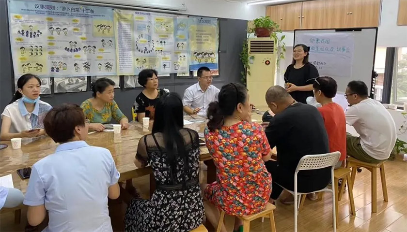 “推手”则意味着社区干部身份的转变,从“社工台上坐、居民台下听”转变为居民主导、社工协助居民完成讨论,社区干部则成为了话题的引导者、讨论的组织者、规则的守卫者。