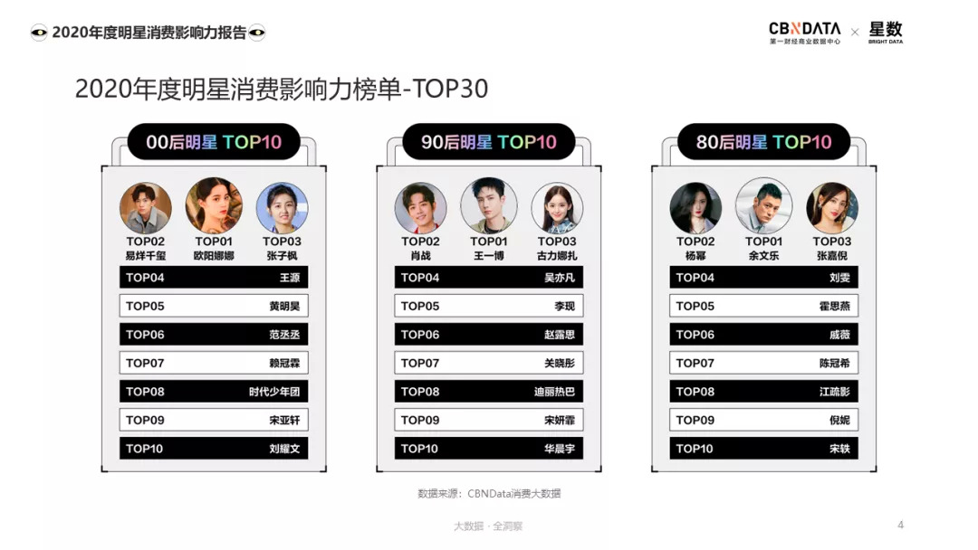 在2020年明星消费影响力年度榜单中,偶像也交出了不错的成绩单,00后明星中,易烊千玺、王源、黄明昊、时代少年团等新生代偶像均有入榜。