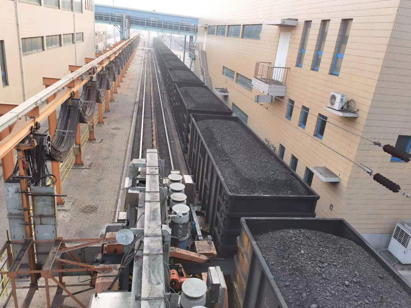 在翻车机房,煤炭进入港区后,一节节满载煤炭的火车由机头牵引,缓缓驶入。到达预定地点后,四节货箱被翻车机抓取,同时翻转160度,在翻转过程中,翻车机干雾除尘设施随即启动,洒水抑尘。
