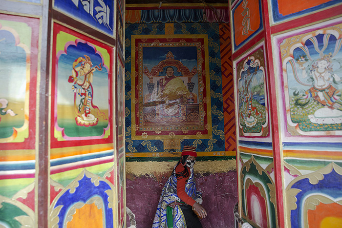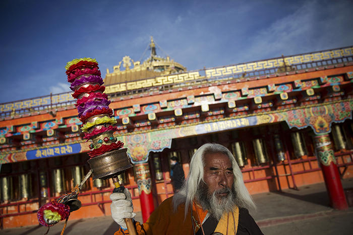 著名的藏传佛教僧人Padma Tsering转经轮。
