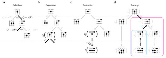 Silver团队让AlphaGo装上MCTS系统的模块,这种框架让设计者去嵌入不同的功能去评估变种。最后马力全开的AlphaGo系统按如下方式使用了所有这些大脑。