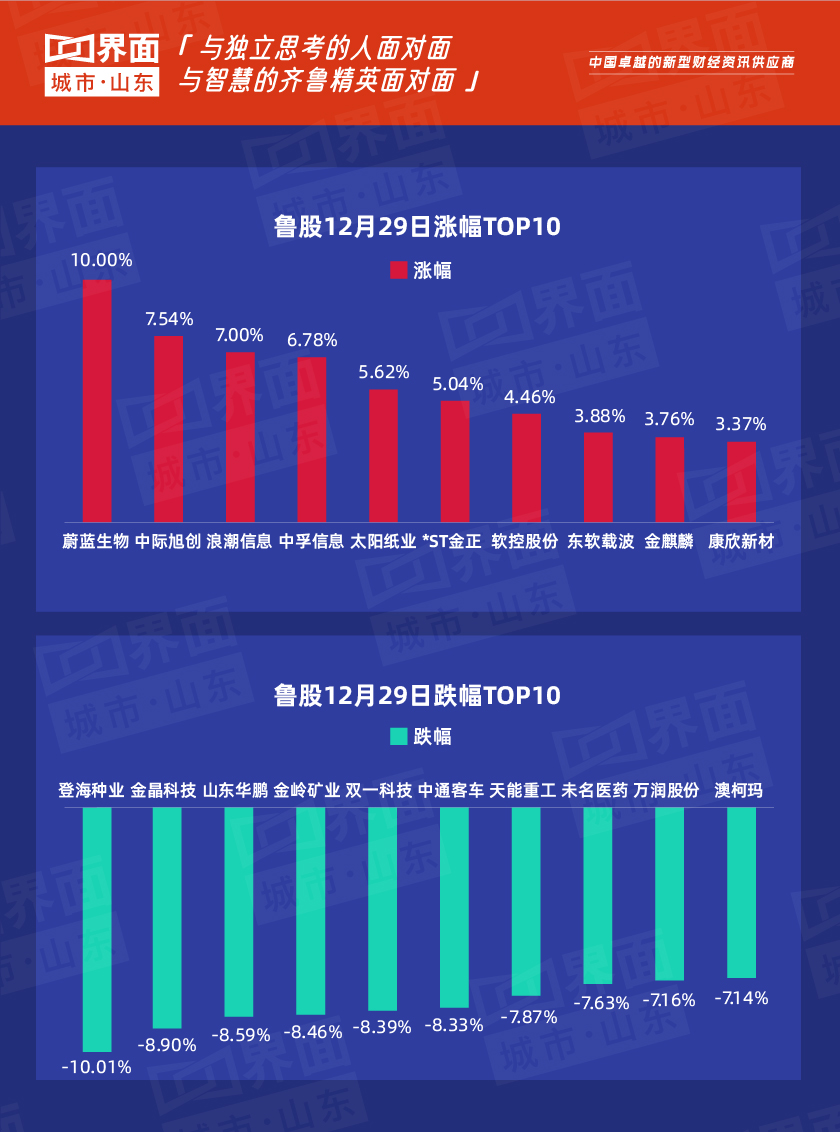 青岛市涨幅榜首:蔚蓝生物(603739),涨幅10.00%,股价22.78元,总市值35.2亿元;
