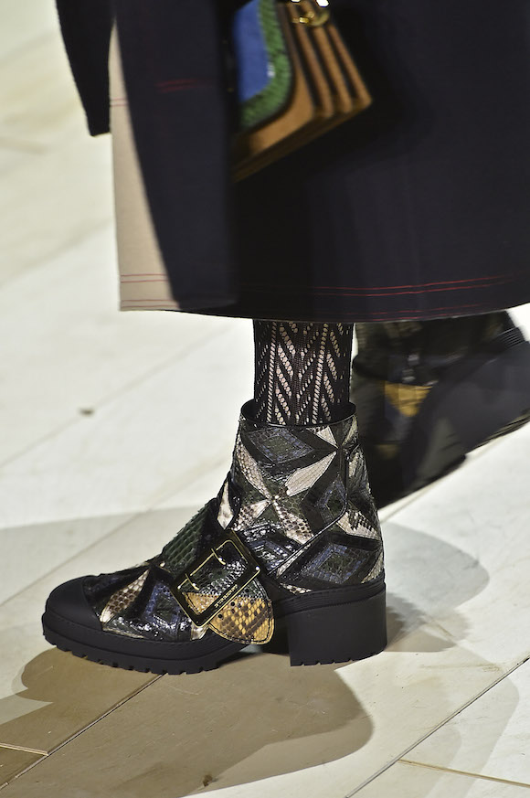 其次,由于“即秀即卖”关系到在无订单的情况下对销售量做出预判,因此能否计划性地推出“爆款”就算是对品牌零售战略和团队的一次检验。Bailey在这一次秀上就推出了一双大方扣的踝靴以及一款全新的限量包袋。以包袋为例,拼色、粗肩带等爆款要素一应俱全,现在只等顾客上门预订了。