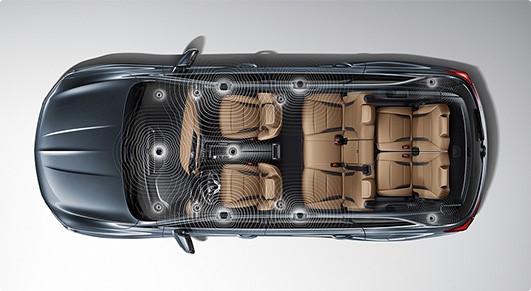 NVH方面,昂科旗也下足了功夫,在设计之初便以优异的整车模态打好整车静音基础,通过运用QuietTuningTM别克专利静音科技,构筑了降噪、隔噪、吸噪三重屏障。其采用大面积的高性能声学材料包覆,例如LWRT+TPO材料的声学底护板,让车底噪音被有效隔绝;发动机前舱采用2mm高分子隔音聚合物+25mm发泡材料的隔音垫,隔绝发动机噪声;后轮罩隔音垫,可隔绝胎噪和路噪;风挡和前门侧窗采用了5mm标准声学夹层玻璃,带来优异的风噪性能。车门、顶棚等区域采用LASD环保轻质止振阻尼,运用液态可喷涂型阻尼隔音材料,降低钣金的振动噪声。再加上全系标配的ANC主动降噪技术,使得整车达到了通用汽车最高等级的Level A级别静音水准,配合带14扬声器的第二代Bose Centerpoint®环绕立体声音响系统,打造出"移动歌剧院"般的奢享静谧空间,让每一位乘员随时都可以体验殿堂级音乐盛宴。