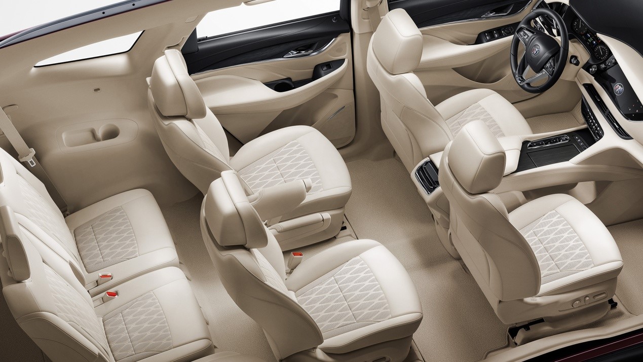 昂科旗Avenir艾维亚则采用“2+2+2”三排六座布局,并且每排座位依次抬高,带来宽绰舒适剧院式空间享受。第二排“头等舱”座椅选用达到“全粒面”品质的上等牛皮,并采用DHH垂直双硬度发泡工艺,在垂直方向不同区域应用多种硬度进行支撑,六向可调航空头枕可为第二排贵宾提供更加宽大的头部接触面积,提升头部贴合度和支撑感;创新设计的四向调节二排座椅扶手不仅保证了中央通道的空间,同时增加手臂支撑面积,提高乘坐舒适性;首次引入的靠背自适应调节功能,可实现26°的超大后倾角度和更大前后移动距离,提供更享受的“躺”姿;加热/通风/按摩功能一应俱全。