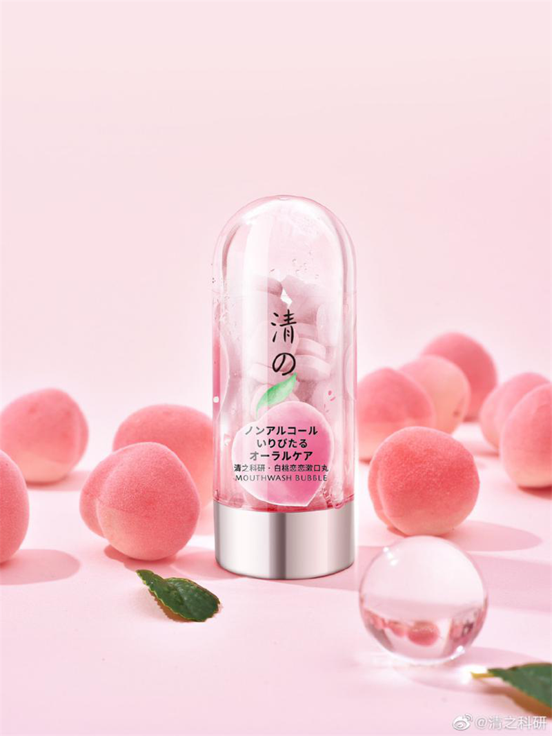 清之科研的“泡泡漱口丸”则别出心裁地将产品膏体从漱口水改为漱口丸,消费者将漱口丸放入口中,咀嚼产生绵密清洁泡泡,15秒后将泡泡吐出即可。