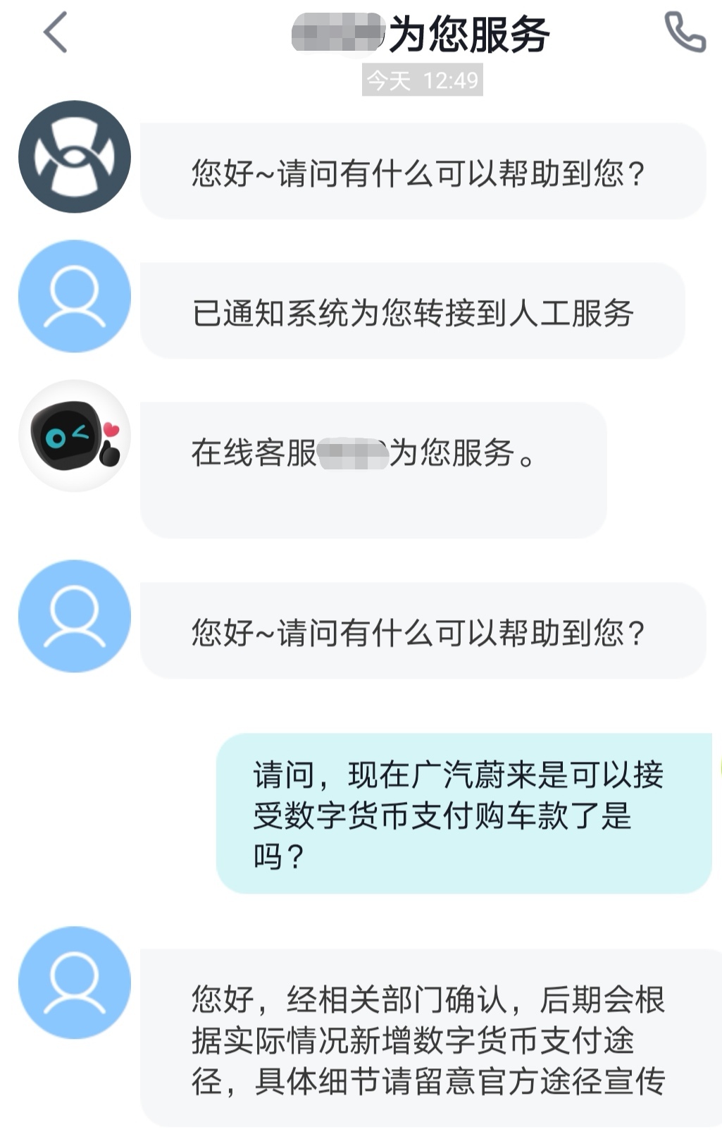 对此,界面新闻在广汽蔚来APP上询问客服得知,“经相关部门确认,后期会根据实际情况新增数字货币支付途径,具体细节请留意官方途径宣传。”蔚来汽车则回应界面新闻称,蔚来从来没有“比特币购车”方案,网传“比特币购车”与公司无关。