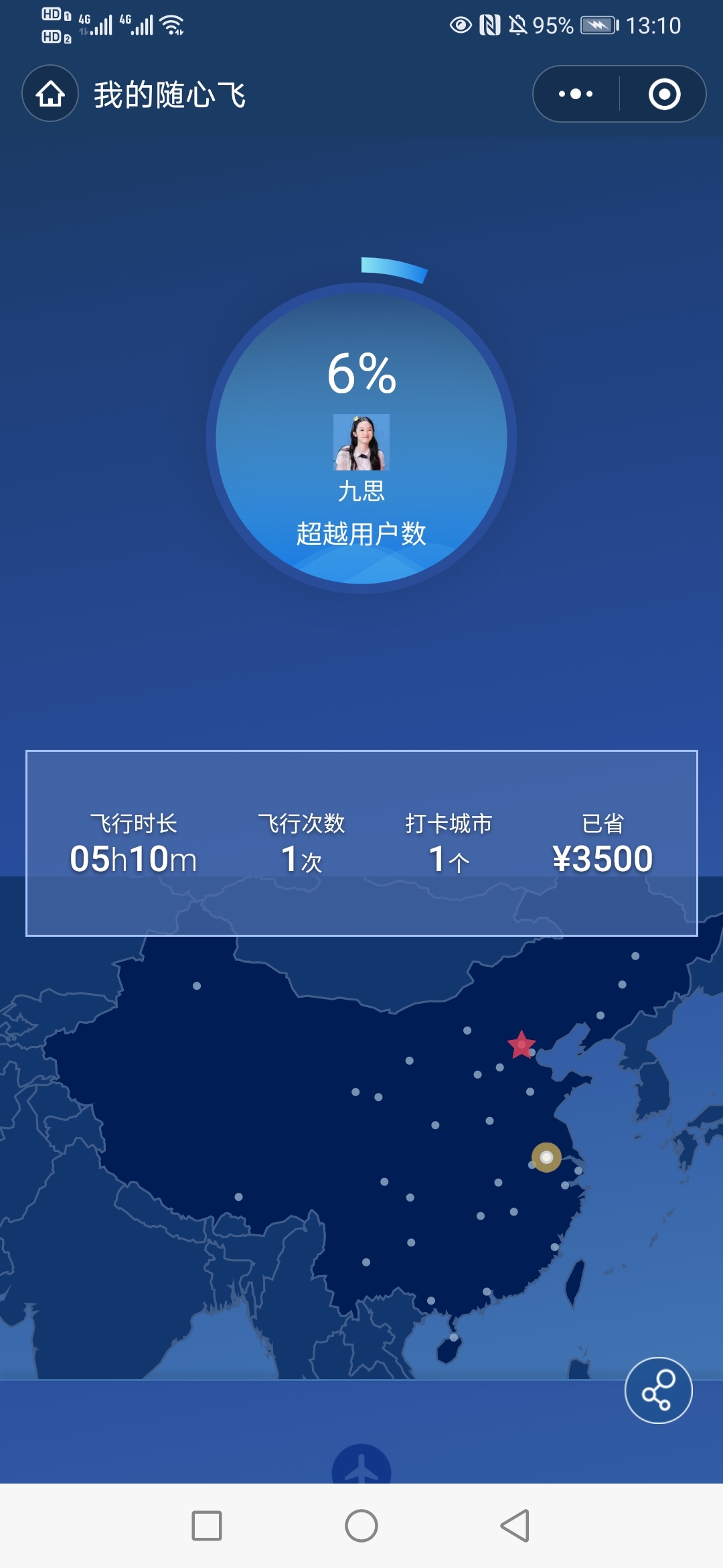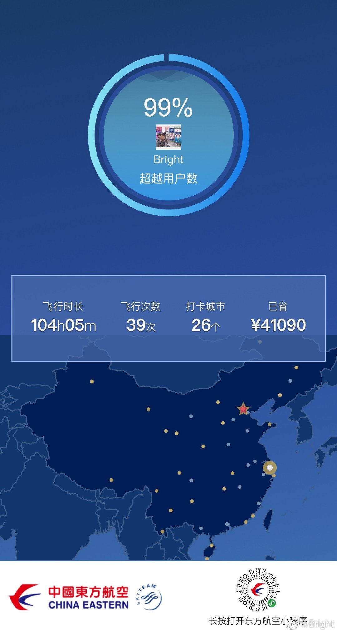 “听说最多可以飞78次,我就努力飞35次吧”,这是他原先定下的小目标,没想到最后超额完成心愿:飞行次数39次、打卡城市26个、省下机票钱41090元。