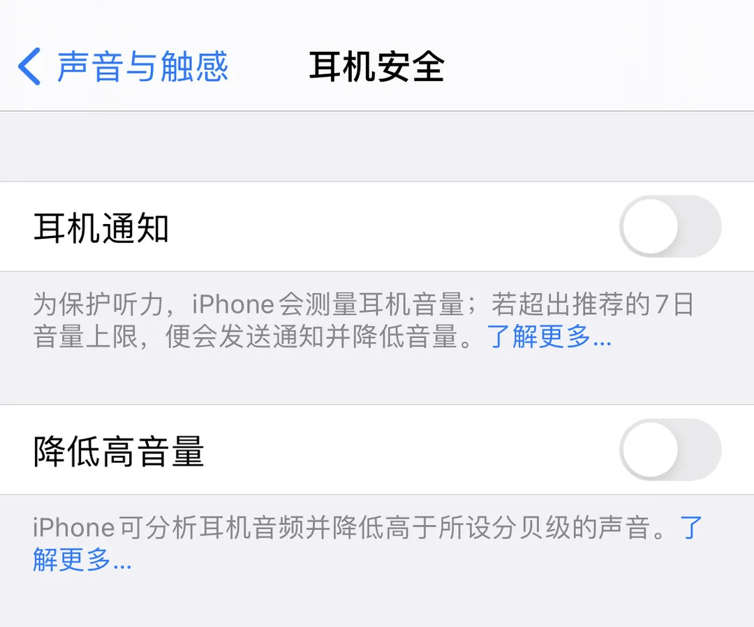 不过现在,这个功能变得聪明了,而且可以在iOS 14的设备上直接体验。在iOS14的设备上,进入设置-声音与触感-耳机安全,即可看到这个功能。