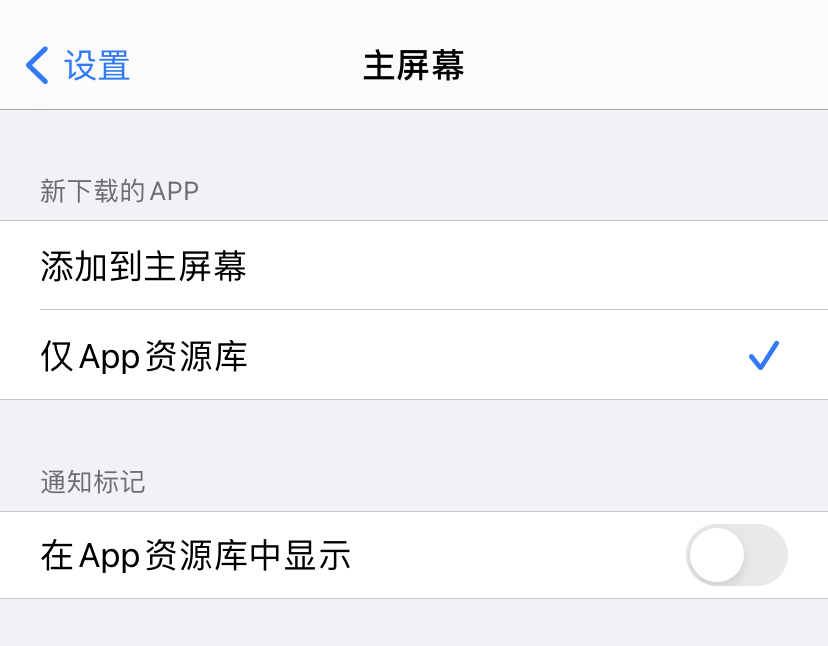 其实,只要在设置-主屏幕-选择App资源库 ,此后再下载应用就不会自动放在主屏幕上,而是会自动放在资源库里面。