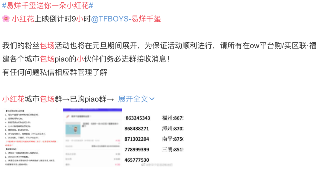 易烊千玺粉丝组织包场如同规划一场战役,尽量在哪天包场才能最大的发挥包场的优势,避免包场的弊端,他们都规划得清清楚楚。除了大的方向规划,还有很多小的执行细节。