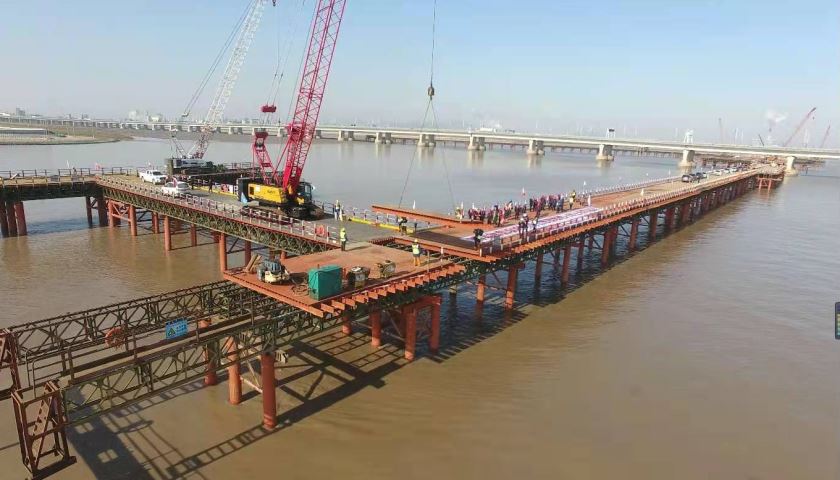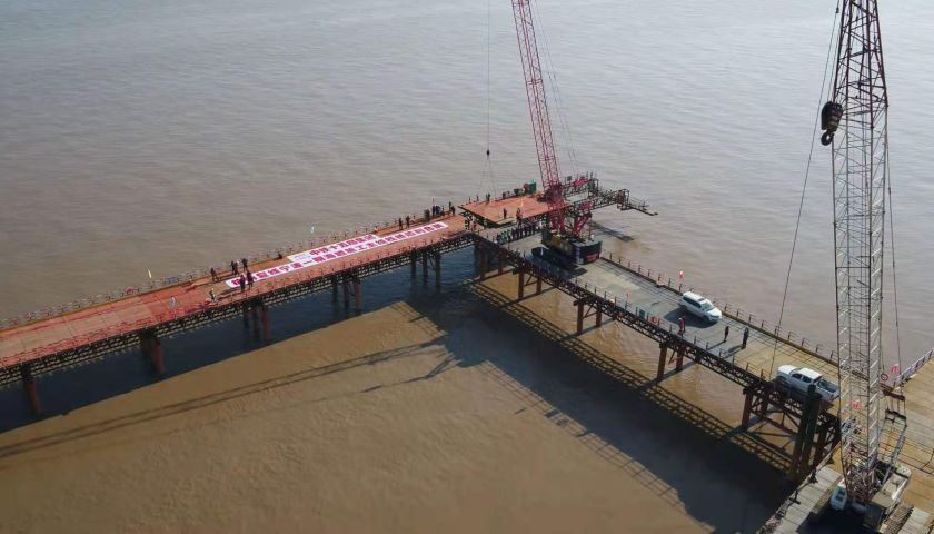 1月1日,在宁波市镇海区东侧海域内,随着最后一片贝雷梁的架设完成,由中铁十五局集团有限公司承建的杭甬高速复线宁波段一期工程滨海区域施工主线栈桥全线正式贯通合龙。