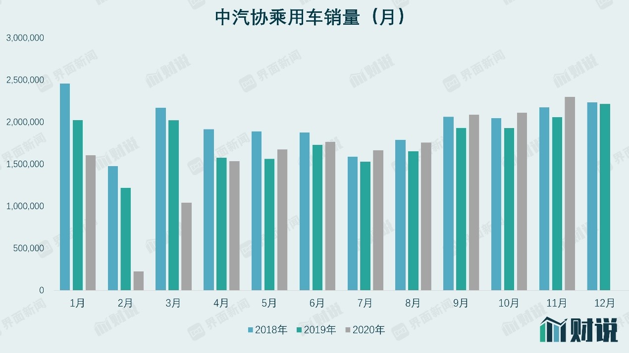 受疫情影响,2020年开年情况并没有好转。数据显示,上半年整车销量同比下降超15%。但2020年三季度市场迎来了反转。9月以来中汽协乘用车月均销量已经基本恢复到了2017年同期水平,同比实现正增长。