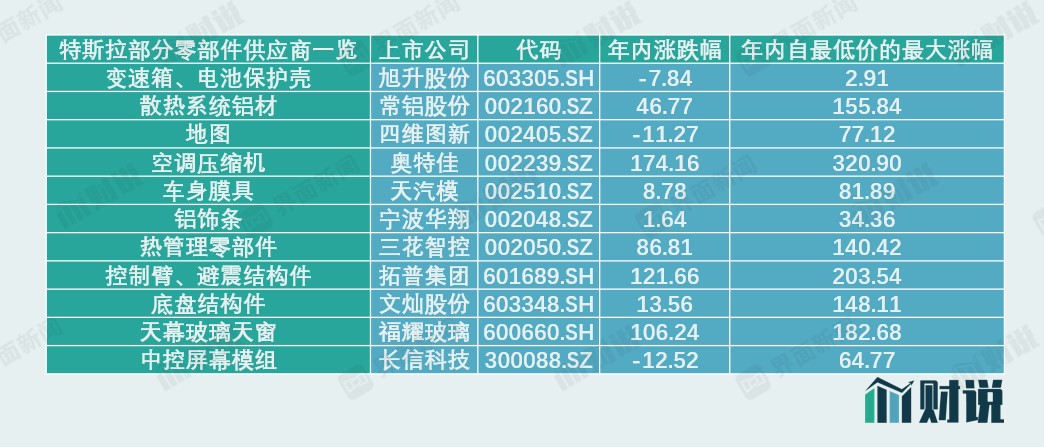 上图中所列的是特斯拉部分零部件供应商,其中四维图新(002405.SZ)、福耀玻璃(600660.SH)和拓普集团(601689.SH)2020年涨幅均超过100%。随着2021年Model Y的量产,相关产业链供应商也将受益。