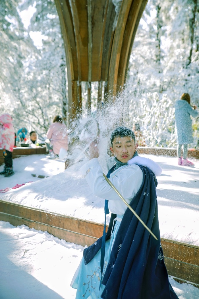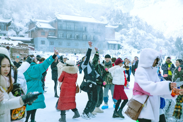 在白雪皑皑的瓦屋山,远道而来的游客朋友们度过了一个难忘的假期。