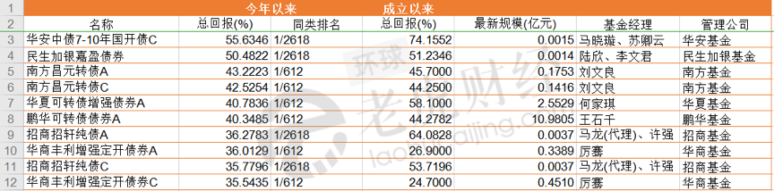 值得关注的是,对权益行情依赖度较高的可转债产品,为债券基金平淡表现增添些许光彩,多只产品年内收益率超20%。业内人士称,当下“固收+”产品发行火爆,可转债已经成为其组合中不可或缺的投资标的。