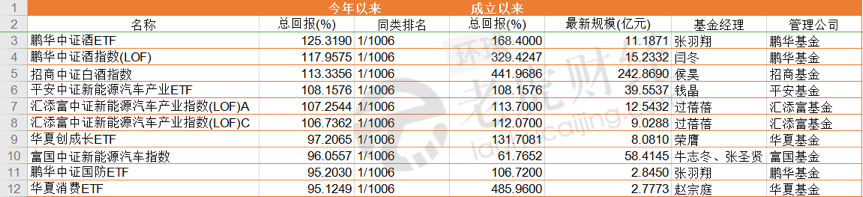 此外,债券型基金冠军为华安中债7-10年国开债C,2020年以来收益率为55.63%;指数型基金冠军是鹏华中证酒ETF,收益率为125.32%。