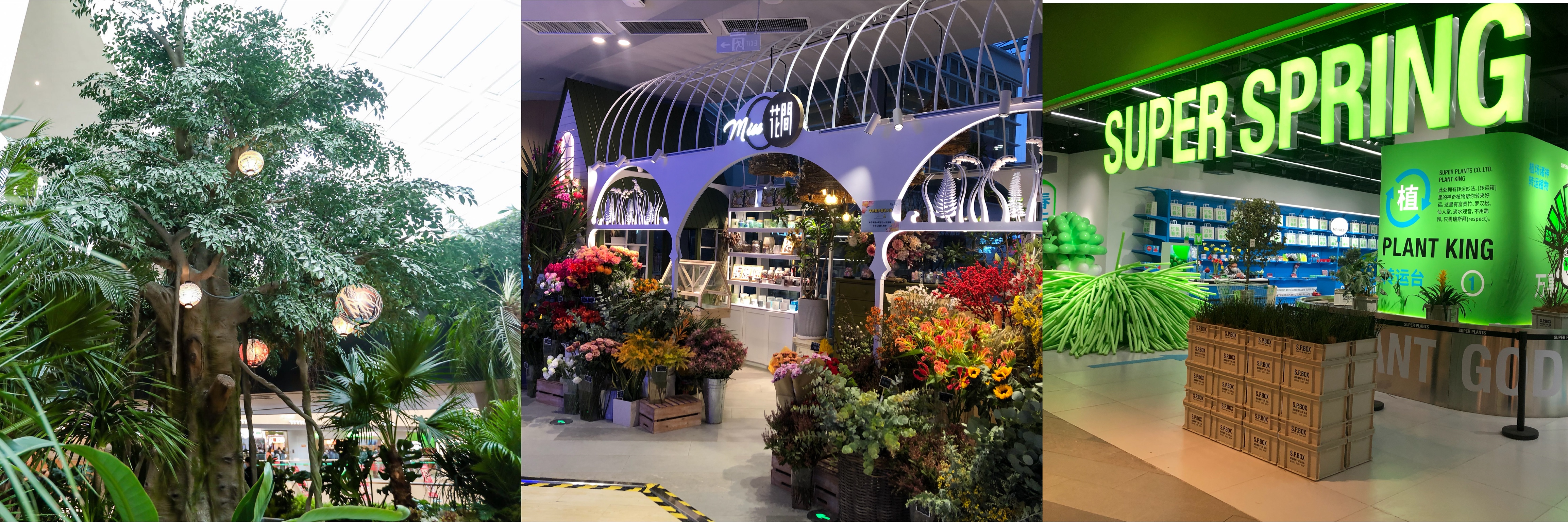 花、树、绿植,是大兴大悦春风里中最为强调的元素。除了中庭小花园,商场角落里的花艺装置、走道中的集市花车,5、6楼树木的种植与铺设、以及超级植物公司、花间等数家花店、绿植店的引入,似乎要让人从进门的那一刻起,就要让“花”的元素在记忆里留下烙印。