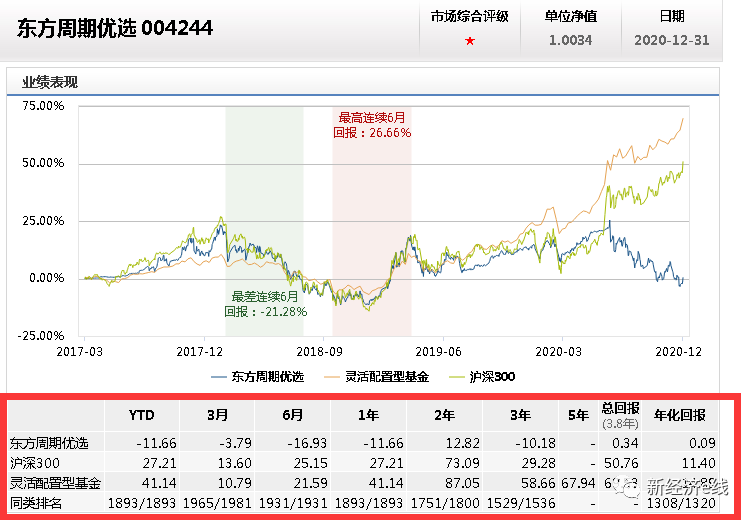 另据新经济e线统计发现,包括东方周期优选在内,2020年全年,共计有12只灵活配置型基金净值告负。
