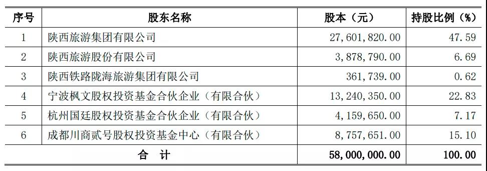 2019年底,宁波枫文股权投资基金合伙企业(有限合伙)、杭州国廷股权投资基金合伙企业(有限合伙)、成都川商贰号股权投资基金中心(有限合伙)三家公司,分别通过协议转让获得陕西旅游22.83%、7.17%、15.10%的股权。