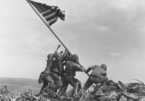 从来没有一张照片能在简洁有力地展现二战后期盟军势如破竹的同时,还能强调出美国军队在太平洋战场上起到的中坚作用。这张照片现在也已成为美国海军陆战队永久的象征标志之一。