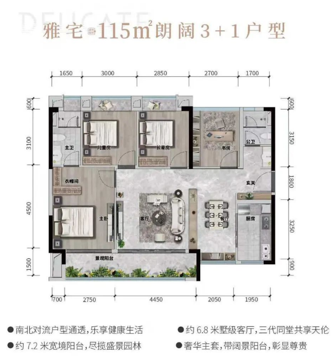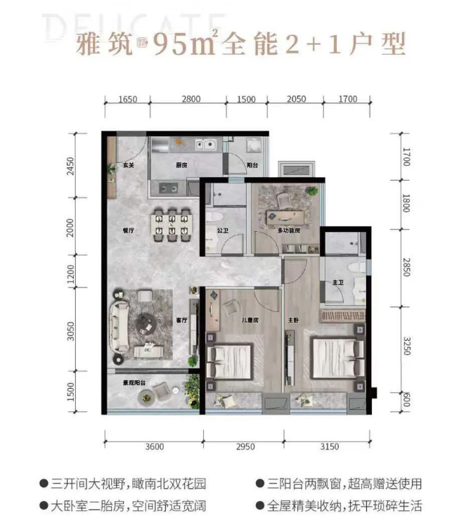 在产品打造上,延续两大房企多年来研发的典藏级设计,打造了建筑面积约85-115㎡三到四房户型,每户皆配置多功能房,部分房型配备三阳台、大飘窗,一字型横厅等大大提高居住舒适度。