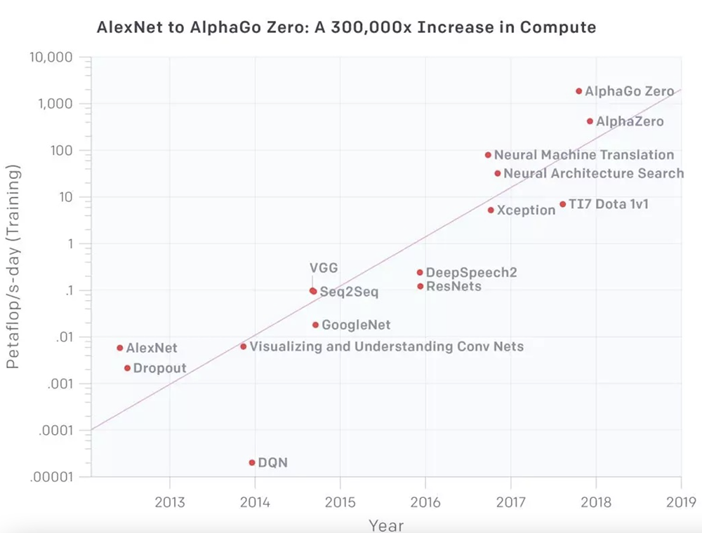 ▲自2012年以来算力需求增长超过30万倍,而如果以摩尔定律的速度只会有 12 倍的增长(来源:OpenAI)