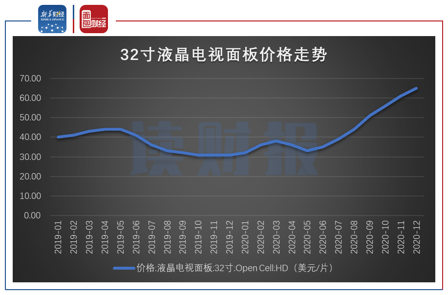 图3:2019年1月至2020年12月32寸液晶电视面板价格走势
