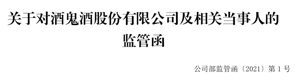 更加值得注意的是,深交所公司部监管函〔2021〕第1号的对象则是酒鬼酒(000799. SZ)。