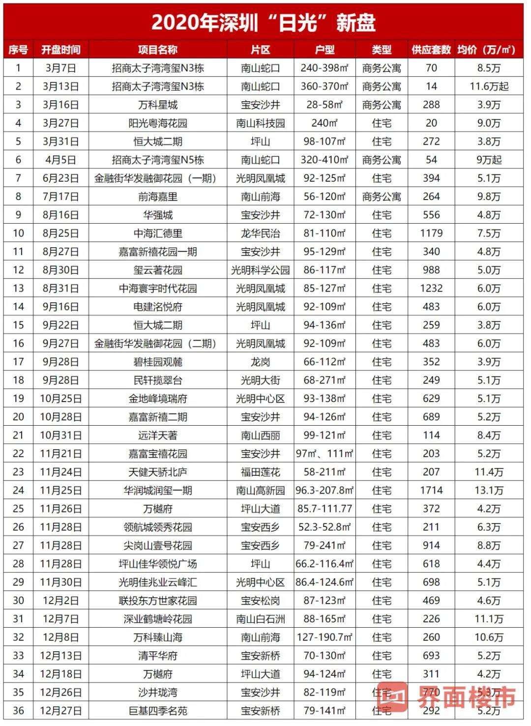 从价格上看,日光的新盘中,均价从“3字头”到“13字头”不等,涵盖了刚需与豪宅,也表明了深圳住房需求的多样性。
