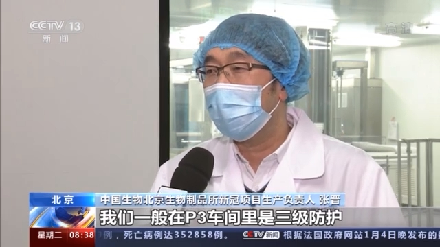 中国生物北京生物制品所新冠项目生产负责人 张晋:我们现在的生产线是两班24小时运转,很多人也是牺牲了自己的休息时间,元旦没有休息,春节也不会休息的。我们会开足马力,满足国家的需求,让我们的疫苗更多地上市,为构建免疫屏障作贡献。