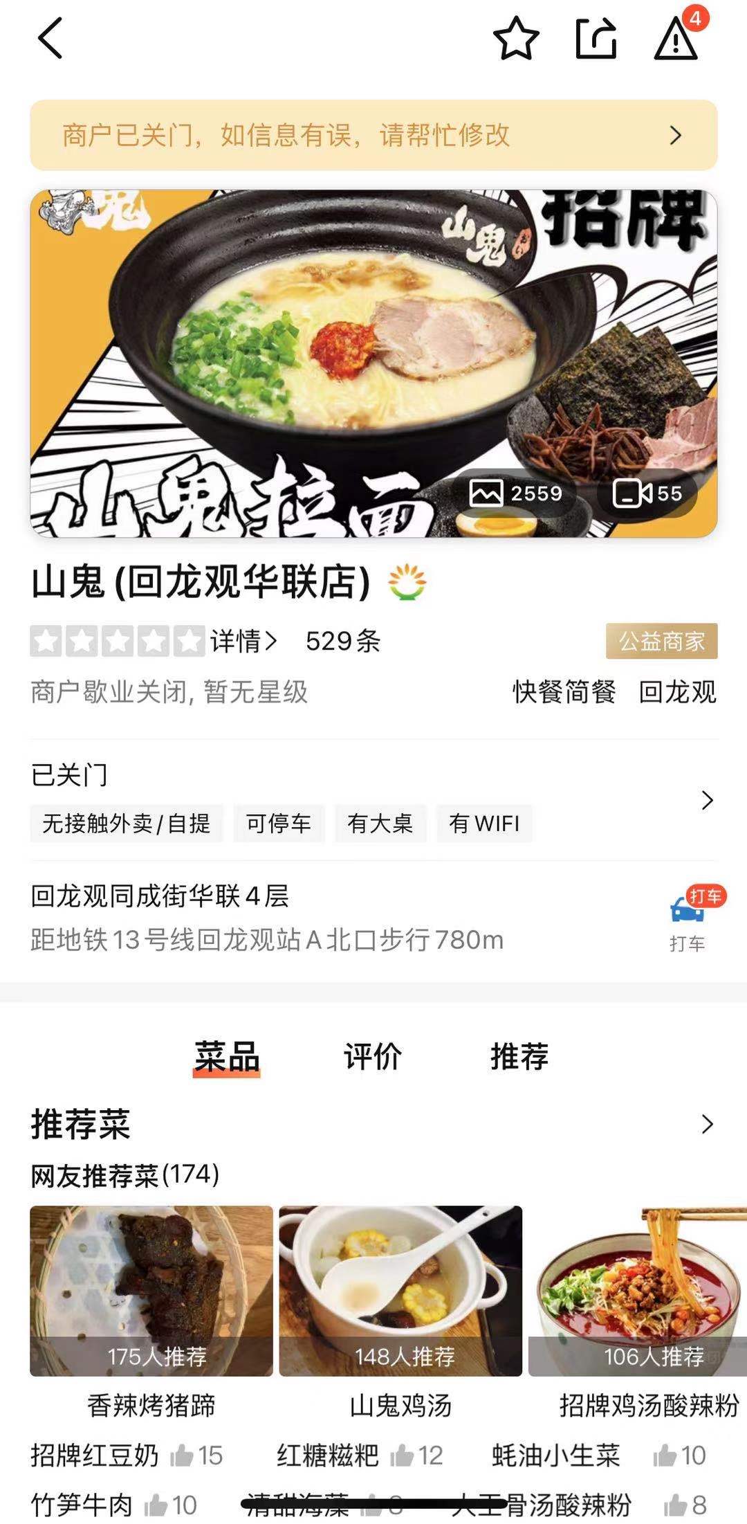 界面新闻查询大众点评发现,目前山鬼仅在北京有一家名为“山鬼拉面·小吃”的门店在营业,主营日式拉面,而中关村、回龙观等北京其他门店目前均显示歇业关闭状态。