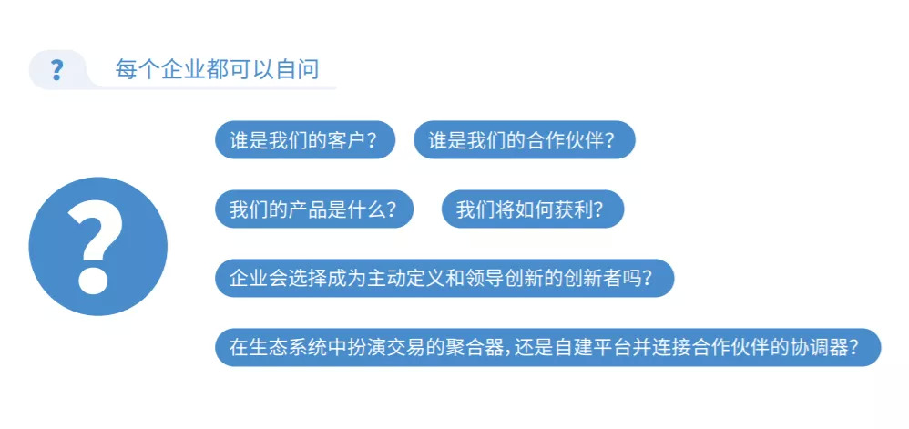 生态系统开启了全新的伙伴关系,企业可以通过生态伙伴为消费者开启产品扩展和互动的新世界,为企业和自身及消费者带来大量新增价值。