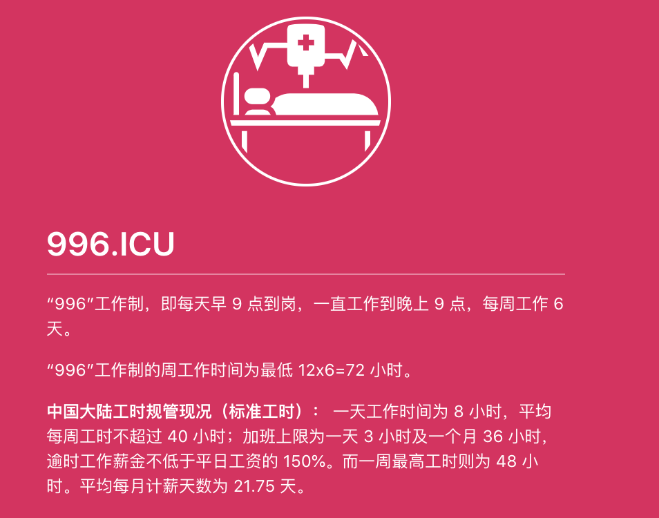 什么是 996.ICU?工作 996,生病 ICU。