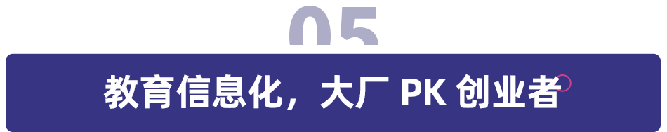 尤其,如阿里、腾讯、华为、字节跳动等互联网大厂入局,收割用户,趁势而起,让教育信息化赛道的选手都回到同一起跑线。从流量到新教育基建的转变,教育行业迎来巨头时代。数据时代,大厂不再靠流量赋能,而是靠基础技术赋能。教育信息化机构要在教师、内容和交互场景之间,思考创造自己的位置,甚至思考是否站队。