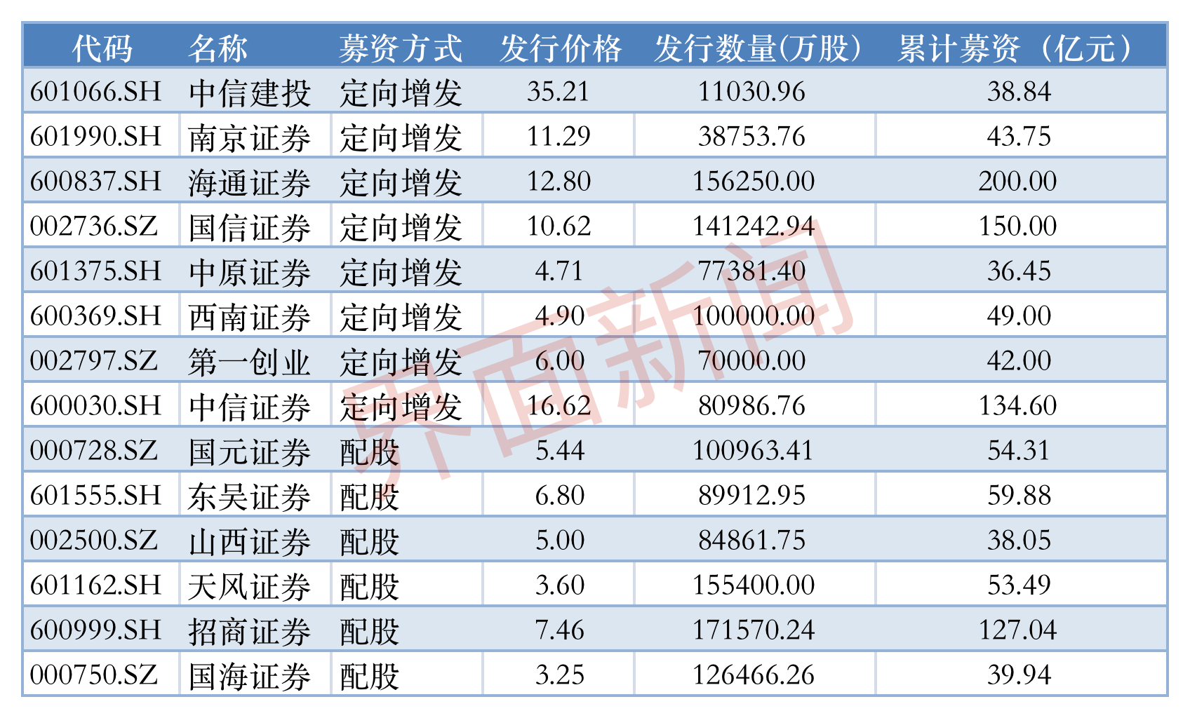 券商正在通过IPO、定增、配股、债券等不同的方式密集补充资本金。