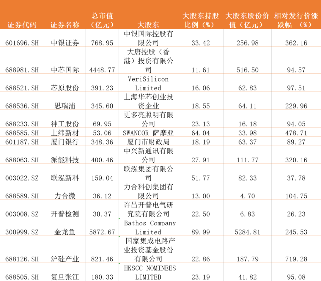 因为股权分散等原因,年内上市的396家公司有14家没有实控人,其中包括中芯国际、金龙鱼、中金公司等。