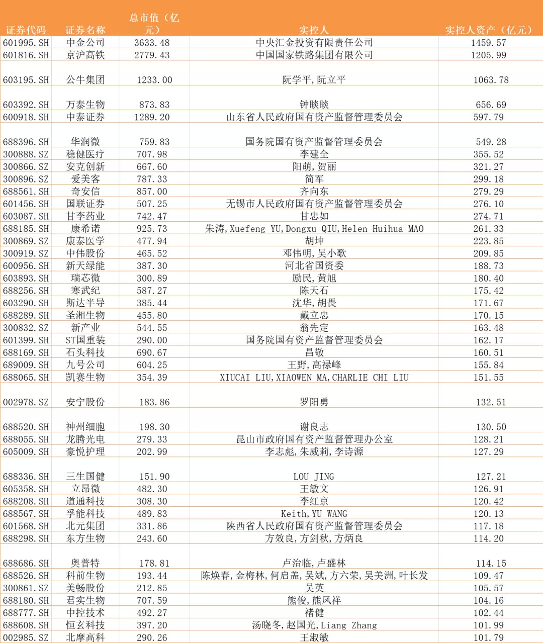 从企业上市实控人的所持股权价值看,中金公司、京沪高铁、公牛集团位列前三,实控人的收益分别为1459亿、1205亿、1063亿。