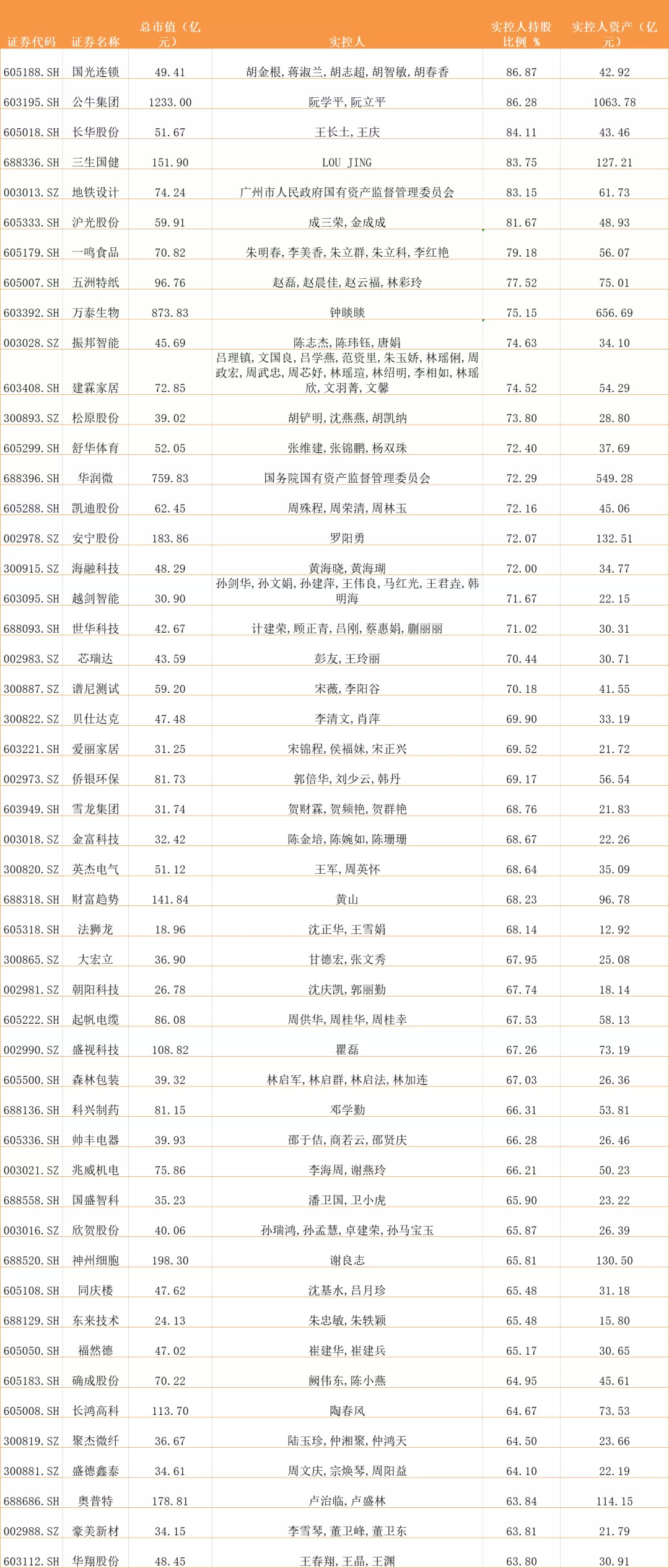 122家公司实控人持股比超50%