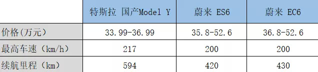 据蔚来官网数据,国产Model Y的最高车速为217km/h,续航为594km;而ES6和EC6的最高车速同为200km/h,续航各为420km和430km。Model Y的续航远高于后者两款车型。