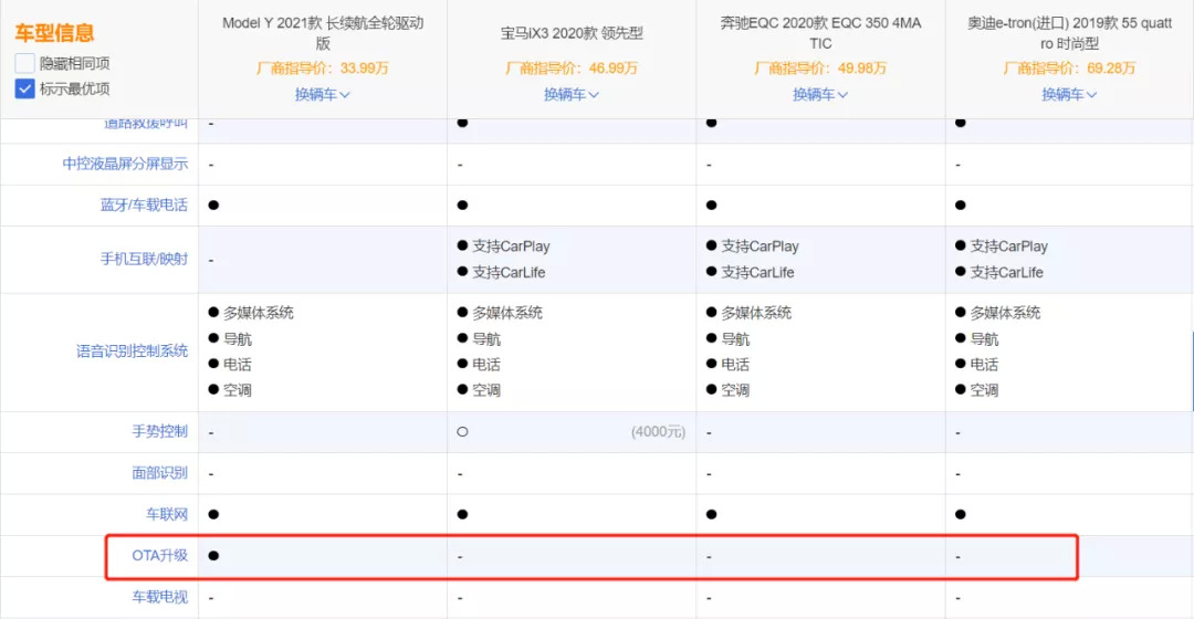 不可忽视的是,Model Y已有巨大优势,不仅具备这几款燃油车没有的智能化,同时,33.9万的售价也远低于这三款车型。