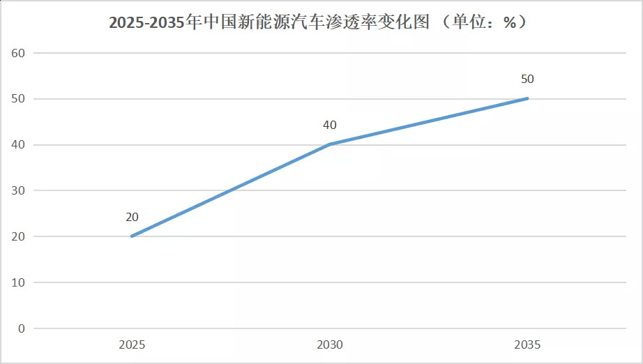 据浦银国际预测,中国新能源汽车渗透率将在2025 年达到20%,2030 年达到40%,2035 年达到50%,即未来15年的复合增长率将达到11%。