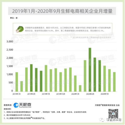 生鲜电商在2020年登顶风口,成为一条“拥挤”的赛道。启信宝数据显示,截至2020年10月,我国在业和存续的生鲜电商主体一共有1.68万家。