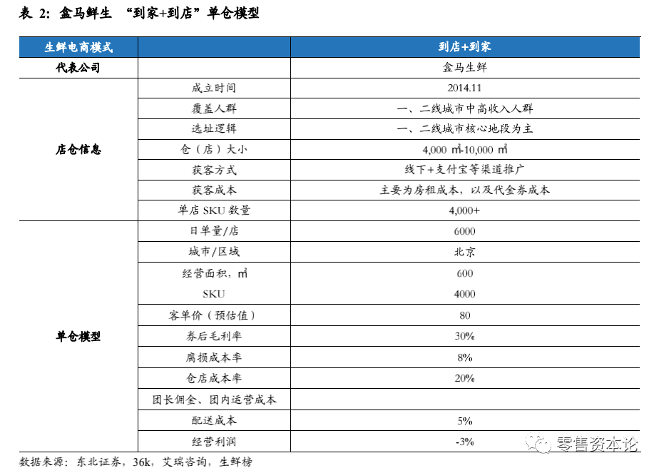 重资产模式,竞争壁垒难以复制,但线下门店建设成本压力较大。由于需要线下实体店铺的经营作为基础,“到店”+“到家”与传统的线下生鲜零售业态部分特点更相似,例如非常依赖店铺选址、货架管理和店内的经营效率。