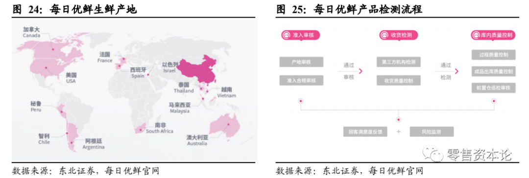 自建冷链运输,从采购到上架全流程不超12 小时确保新鲜,同时向上游布局生鲜种植基地。